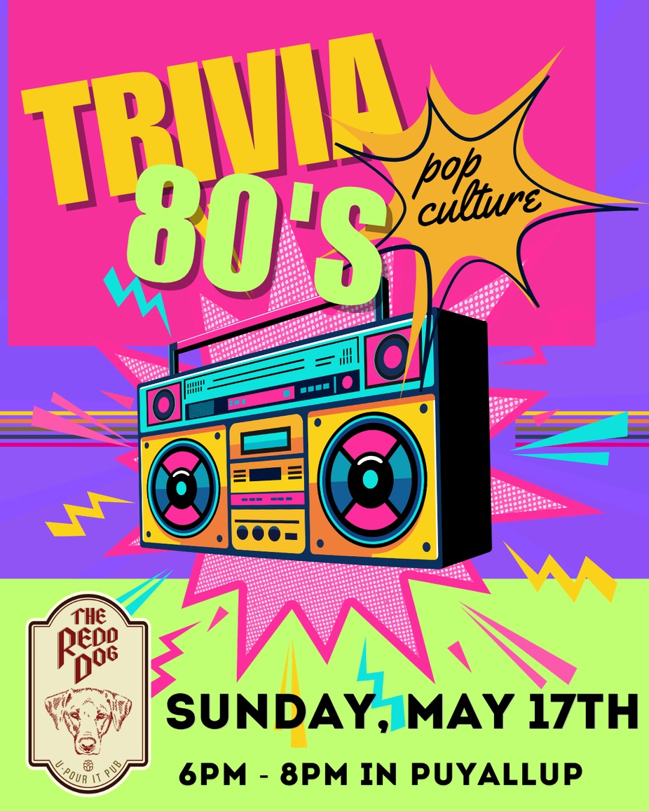 It's all 80s, baby! Join us for a one night only event. 6pm. Free to play and prizes to win!