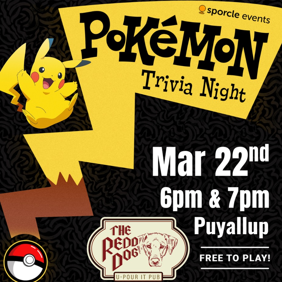 Sporcle presents - Pokemon Trivia! Join us in Puyallup on Sunday, March 22nd at 6pm & 7pm