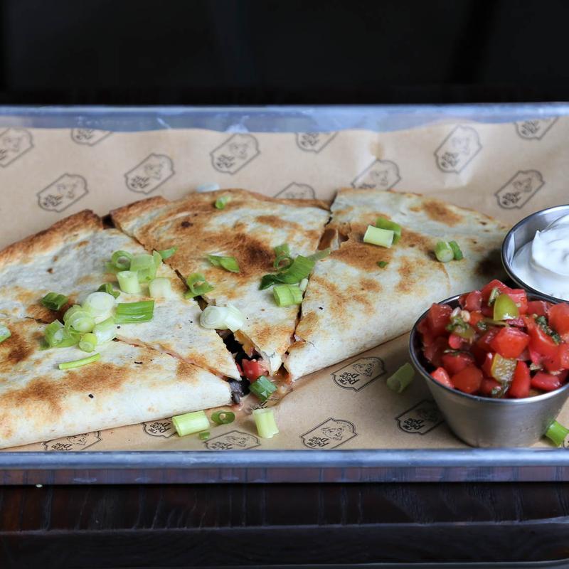 Cheddar Jack cheese, black beans, pico, and sour cream.